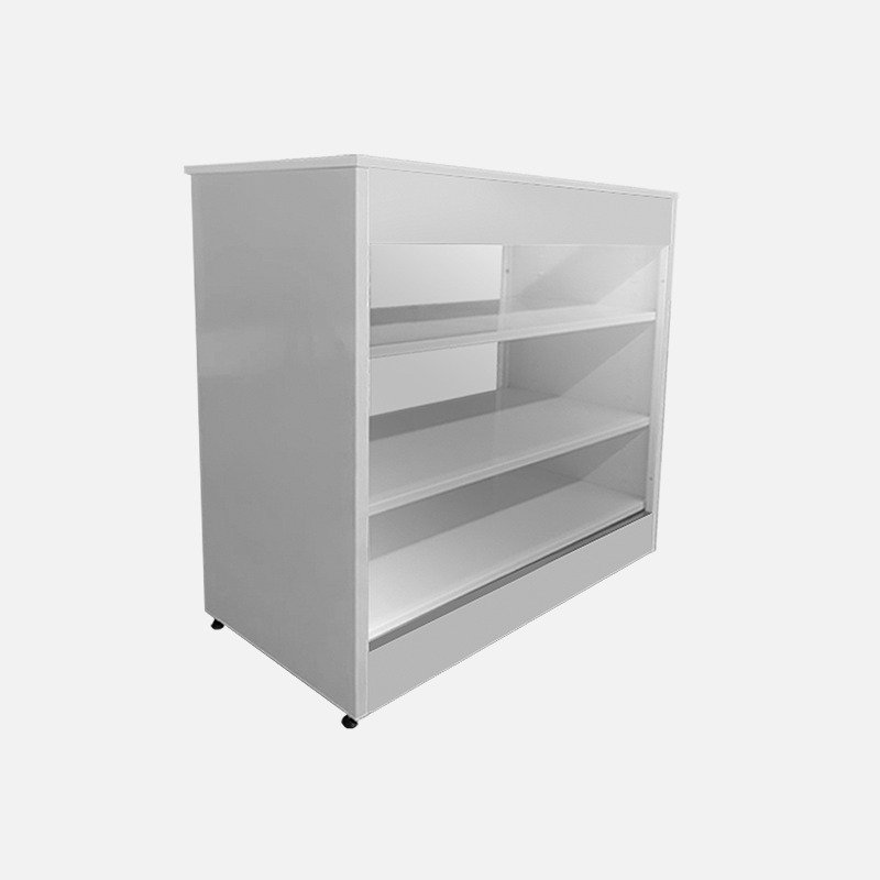 Balcão Vitrine 1,10m Comprimento x 1,00m Altura x 50cm profundidade, pintura eletrostática epóxi, com tratamento antibacteriano, antiferrugem.